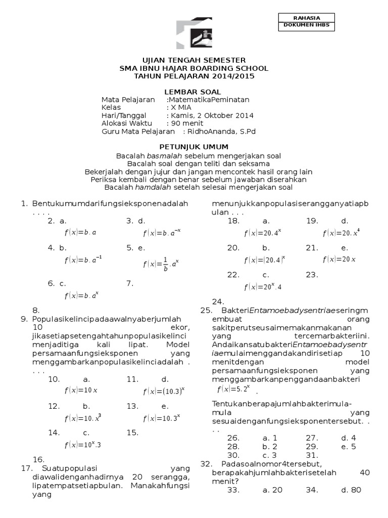 Soal Latihan Matematika Kelas X - Interactive worksheet from files.liveworksheets.com 0%0% found this document useful, mark this document as useful. Jika x1 = 2,3 adalah taksiran pertama dari akar f(x) = 0, dan x2 adalah taksiran kedua, nilai x2 adalah. Pembahasan soal penilaian akhir semester matematika peminatan kelas x tahun pelajaran 2018/2019 ganjil ini terdiri dari materi.